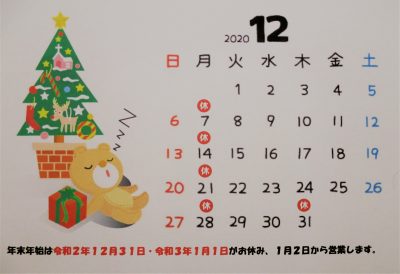 年末年始は令和2年12月31日と令和3年1月1日はお休みをいただき、1月2日から営業開始します🏃